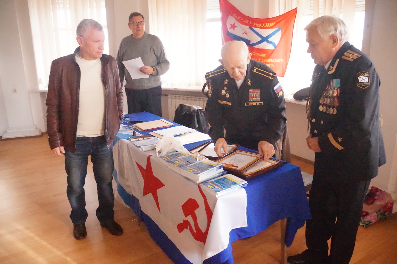 Председатель ветеранской организации , капитан 2 ранга И.Леонтьев, заместитель - капитан 3 ранга В.Сагайдачный.