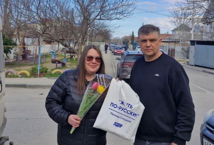 Жительницы Севастополя продолжают получать поздравления от координаторов первичных отделений Севастопольского отделения ЛДПР в честь праздника весны.