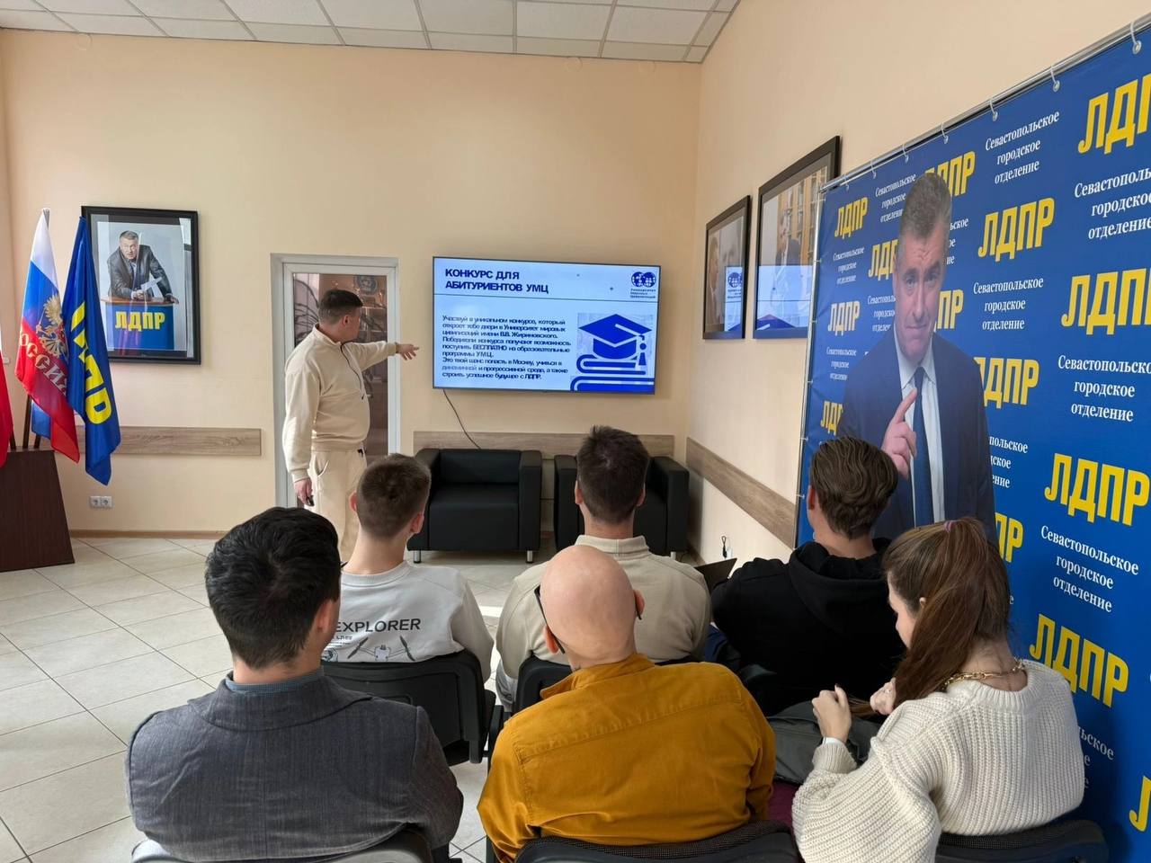 Молодежная организация Севастопольского отделения ЛДПР провела встречу со старшеклассниками, на которой партийцы рассказали о конкурсе ЛДПР, организованном Университетом Мировых Цивилизаций